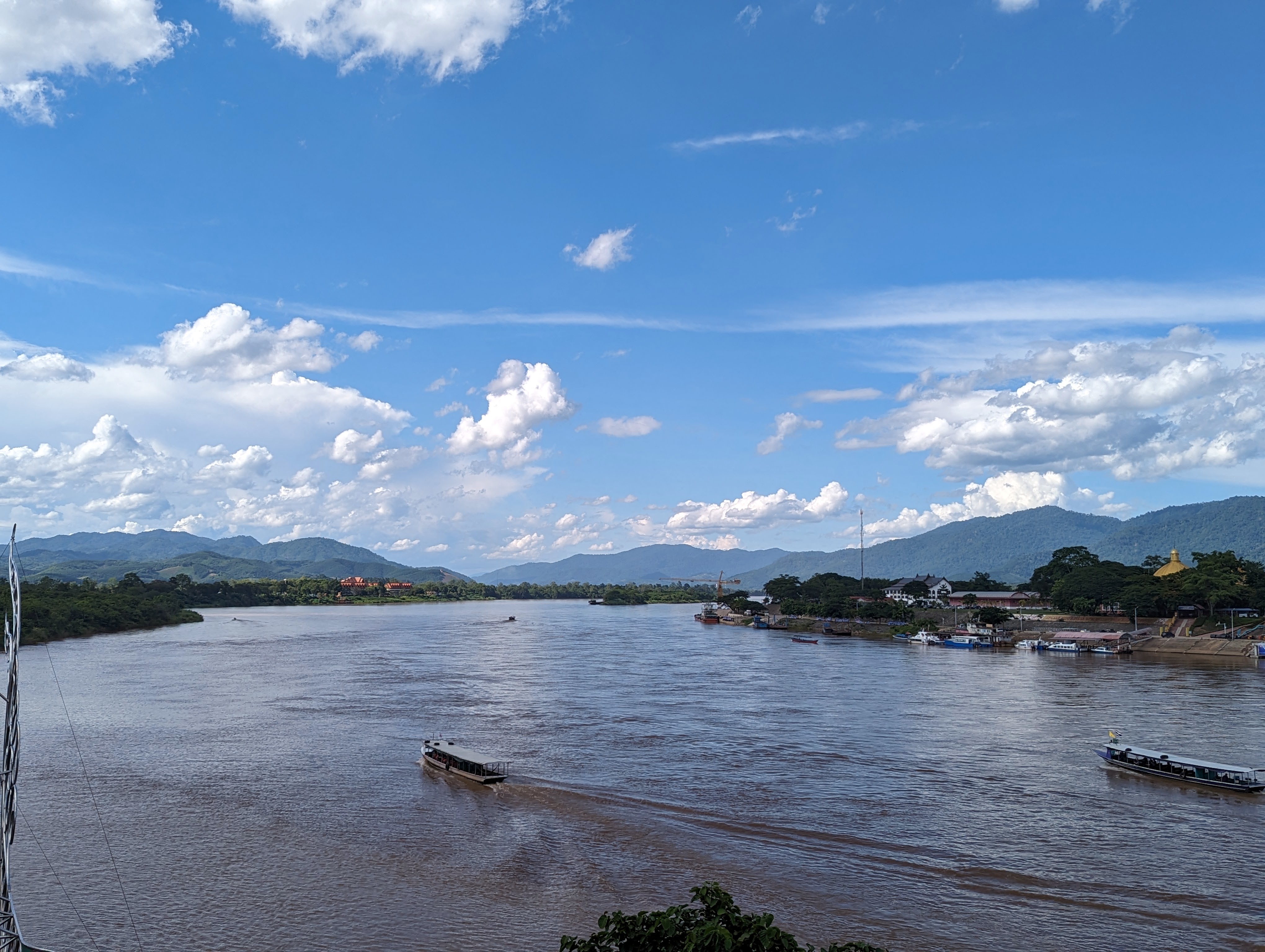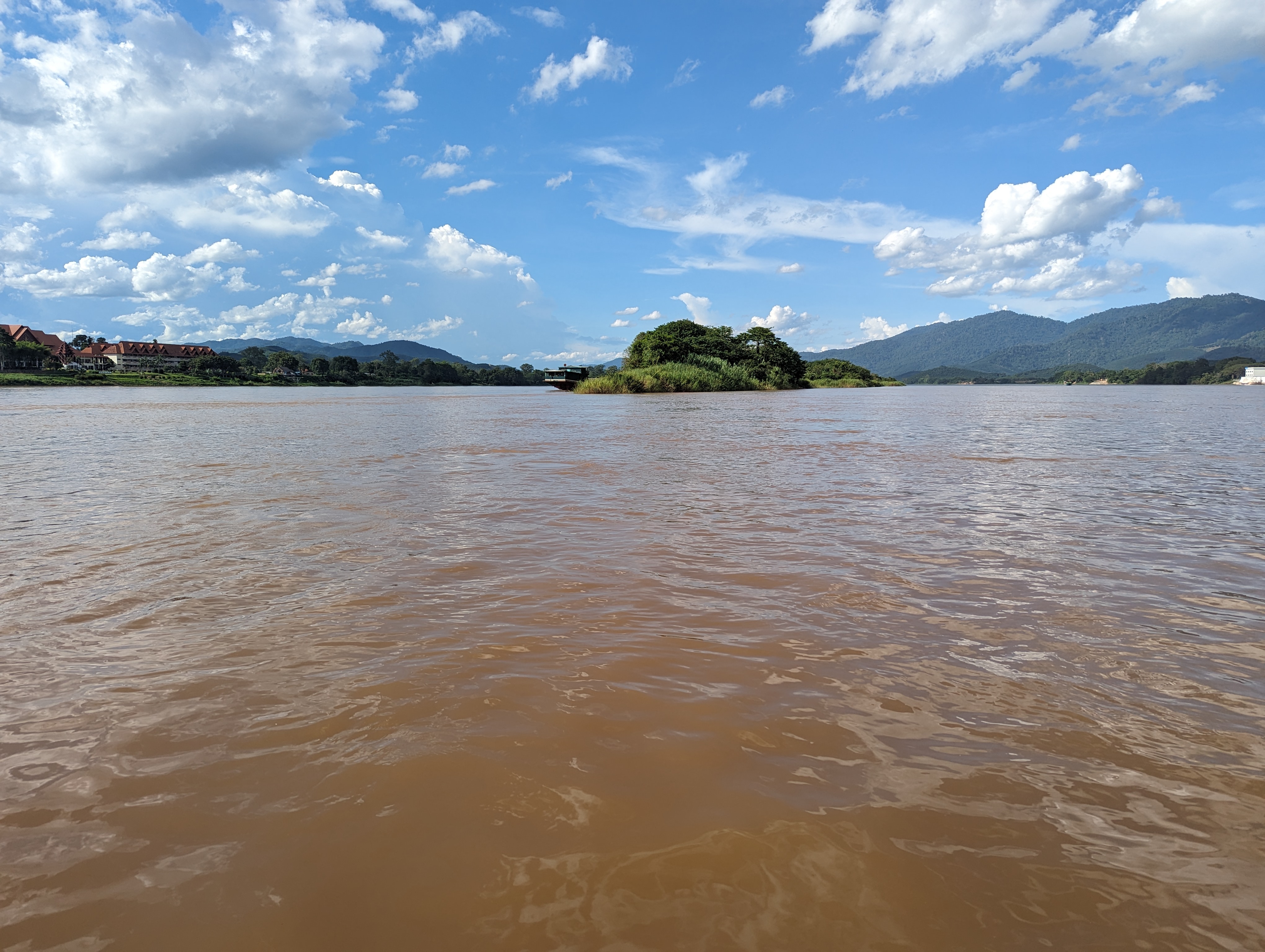 Have you ever found yourself in a place where you knew of the history or current events, often violent or momentous, but it simply looks like a beautiful piece of nature? I have felt that way standing on the Plains of Abraham in Quebec(where the British defeated the French) or Little Bighorn, Montana and Southern Saskatchewan(where Sitting Bull bravely led his people against colonizers), Brisbane, Australia(where I found myself in the middle of a First Nations uprising/riot) or New York after 9/11. And again when I found myself in a boat sitting where the Ruak and Mekong rivers meet and where the borders of Laos, Myanmar and Thailand meet in The Golden Triangle. Our guide had said we would see the countries where executions were taking place last year and where the Chinese are buying huge areas of land to develop for Chinese investment, but I didn’t understand that we were going to literally sit in a boat at the confluence. But we did…I sat there, with my hand in Myanmar waters, then in Laos waters, listening to the couple in front of me from Singapore explain in detail about the civil unrest in each country and the layers of internal and external fighting, all as our tour guide spoke of the history of the area that used to have different borders because much of the area was called the Lan Na Kingdom. As I absorbed the almost overwhelming tales of kings and battles, invasions and political plots, current revolutions and power plays, we sat slowly turning on the spot…to our left, current internal conflict and political coups, to our right, financial colonialism, and behind us, Thailand, where conflict with Myanmar is still felt as somewhat recent history. I’m glad they let us stay there for a while, all of us commenting on the oddness of borders that we cannot see, and thankfully, the group I was with also wanted to be silent for a moment to absorb it all. Our guide Fern, shifted our focus, talking about how the Mekong River comes from the Chinese Himalayas through the Tibetan peninsula…which pulled me and those around me into another conversation as we looked upriver towards faraway Tibet. As we puttered back to the dock under the Buddha, some of our cohorts happily announced it was time again for ice cream, an announcement that had gleefully been made throughout the day. There it was again, the light and the heavy, flowing around and with each other.