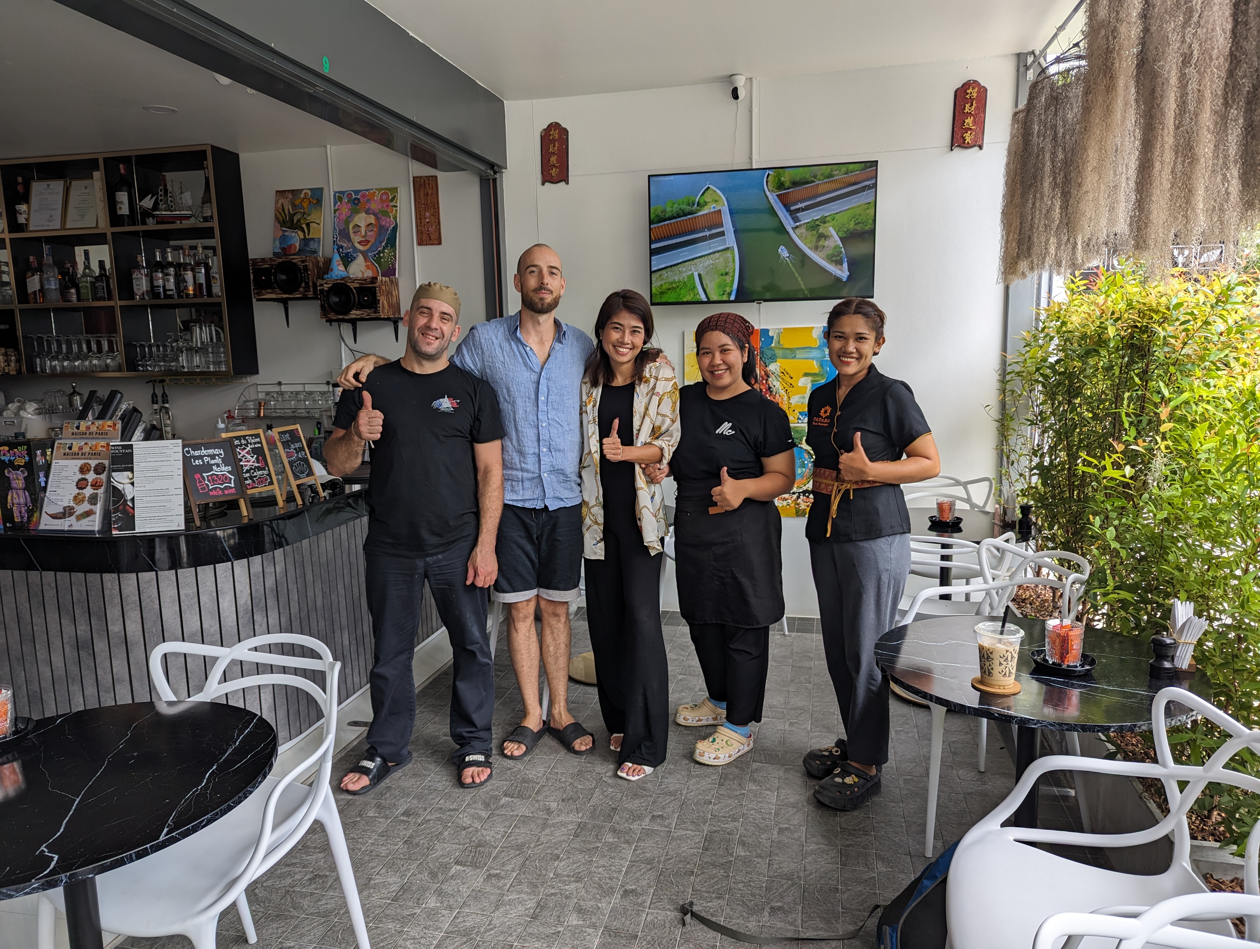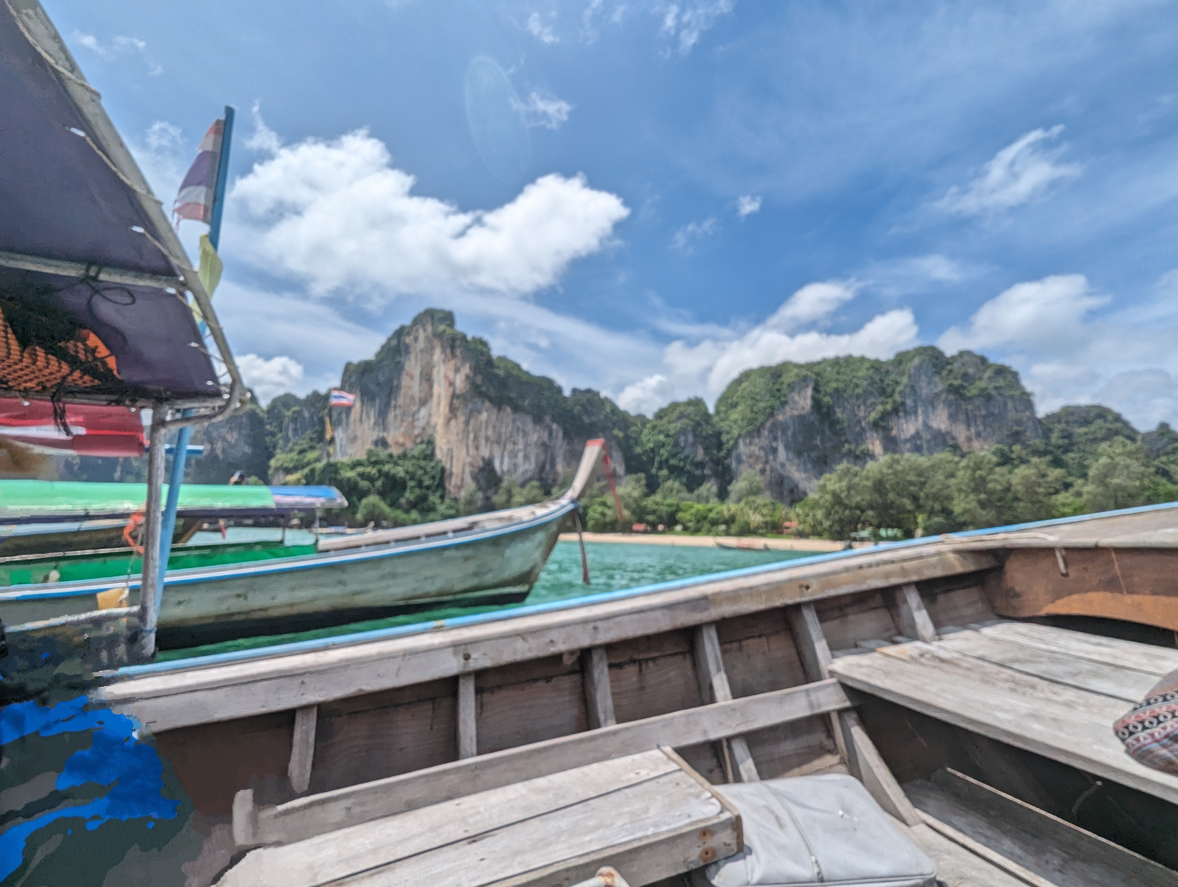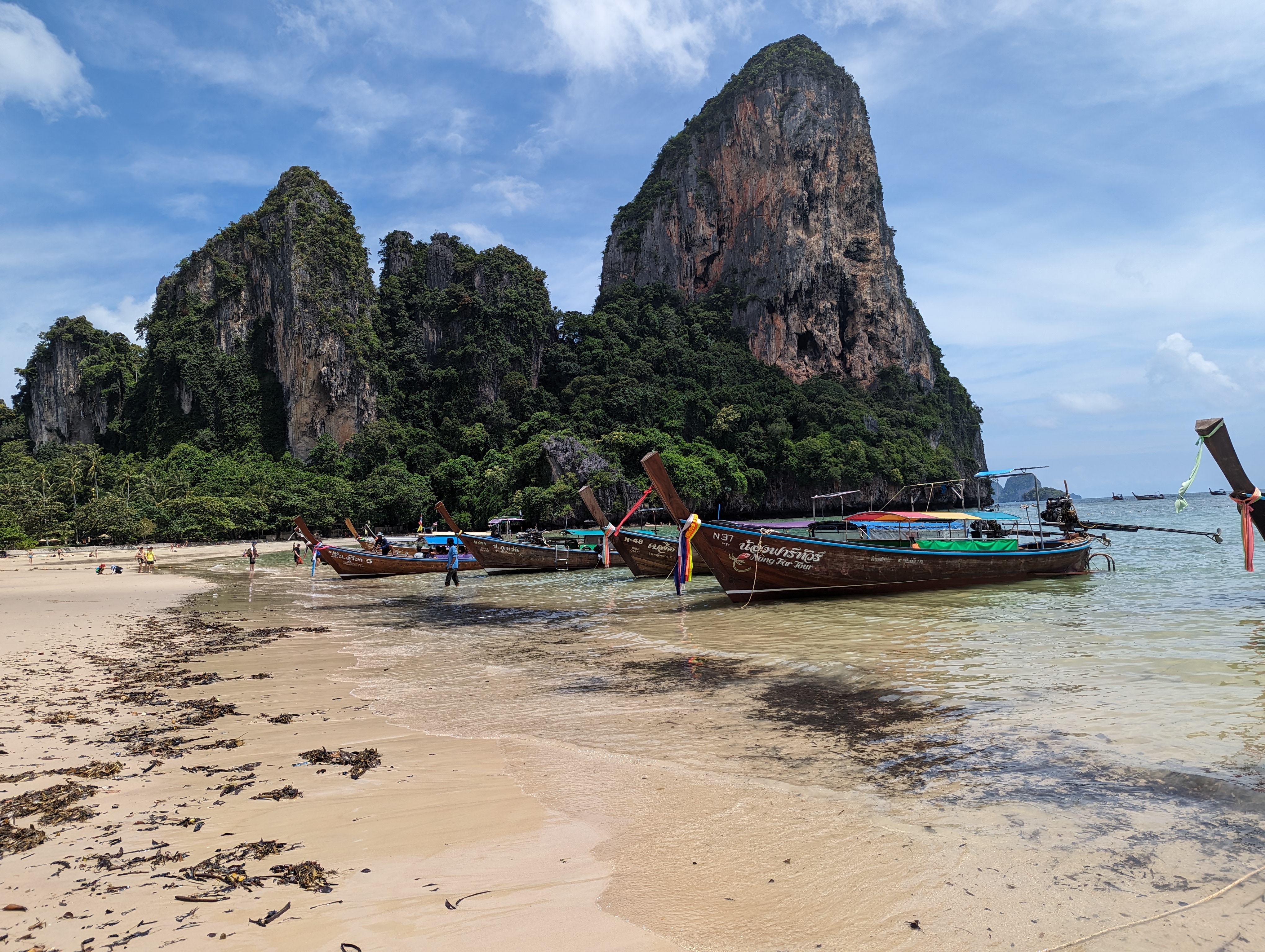 Photo Gallery: Ao Nang beach in stormy weather, and in sunny weather, Harry, Simon, Mai, Meilee and Eye(my Thai Masseuse), the best salad I’ve had outside Tofino, my walk home and the boat on the way to Railay Beach