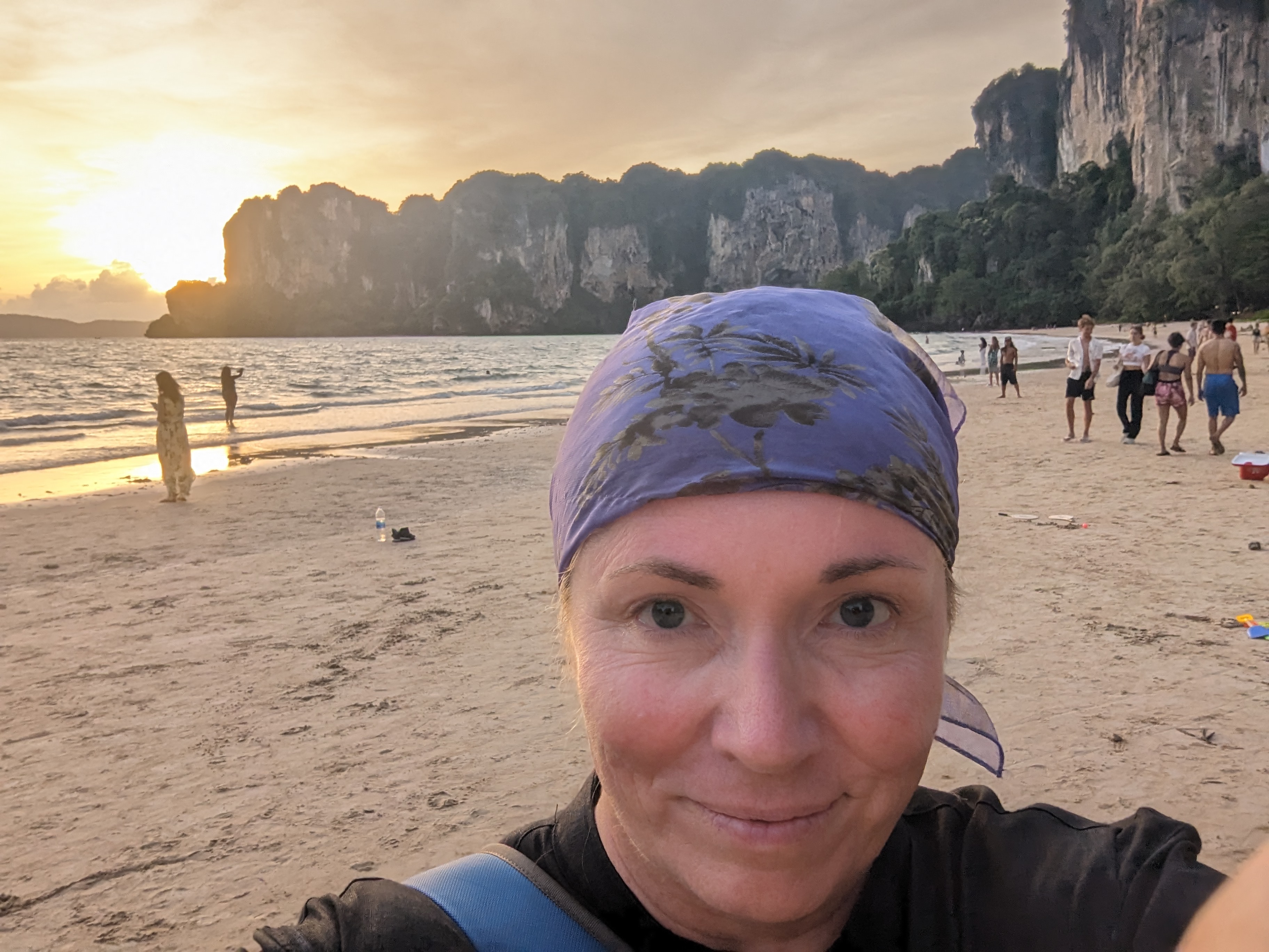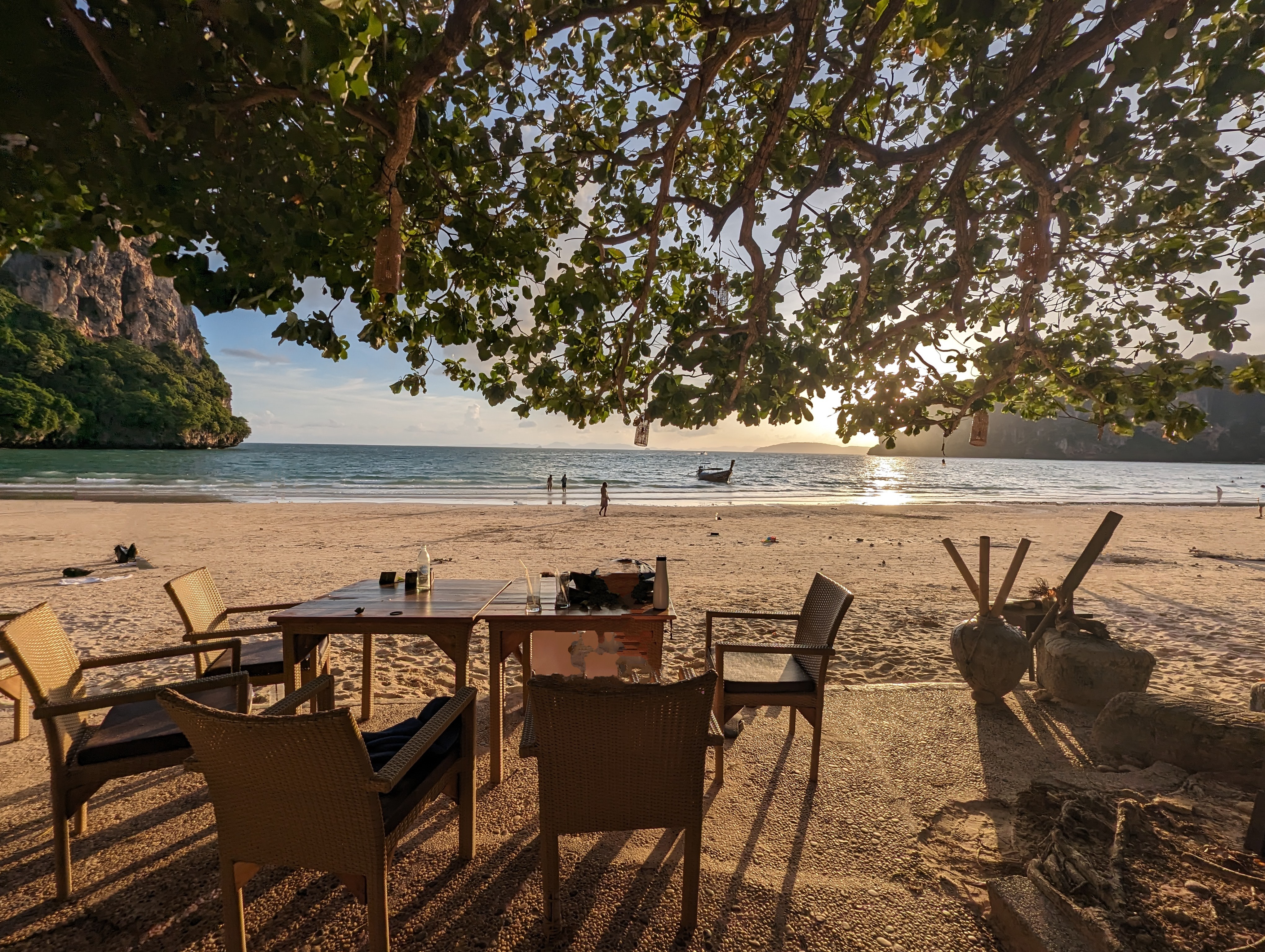 Photo Gallery: Proof of life(some of you have sent DMs asking for more “me” pictures), my hangout table at Railay Beach at sunset, cheeky monkeys, a spot the monkey picture for all my puzzle loving friends, and more Railay Beach.