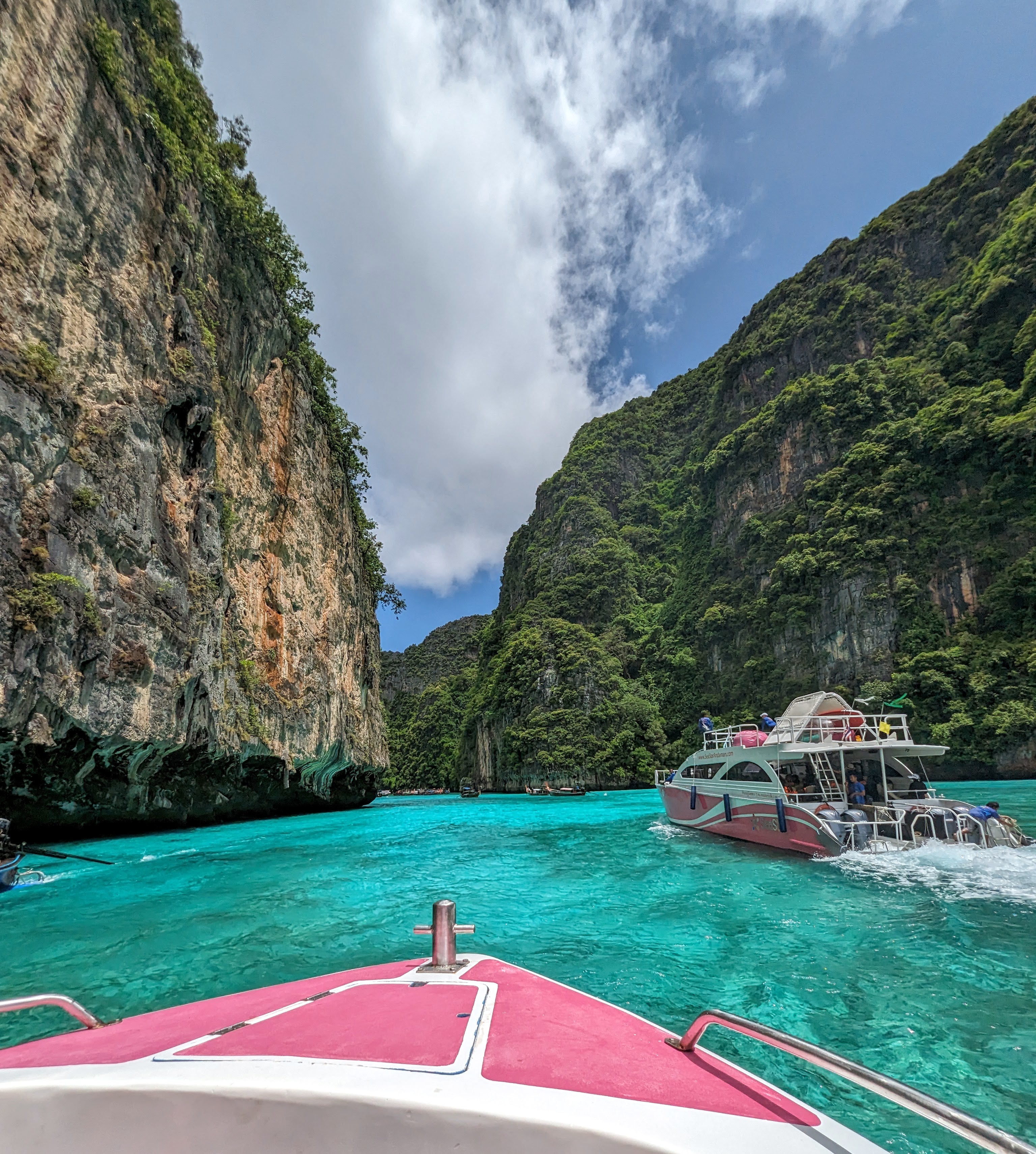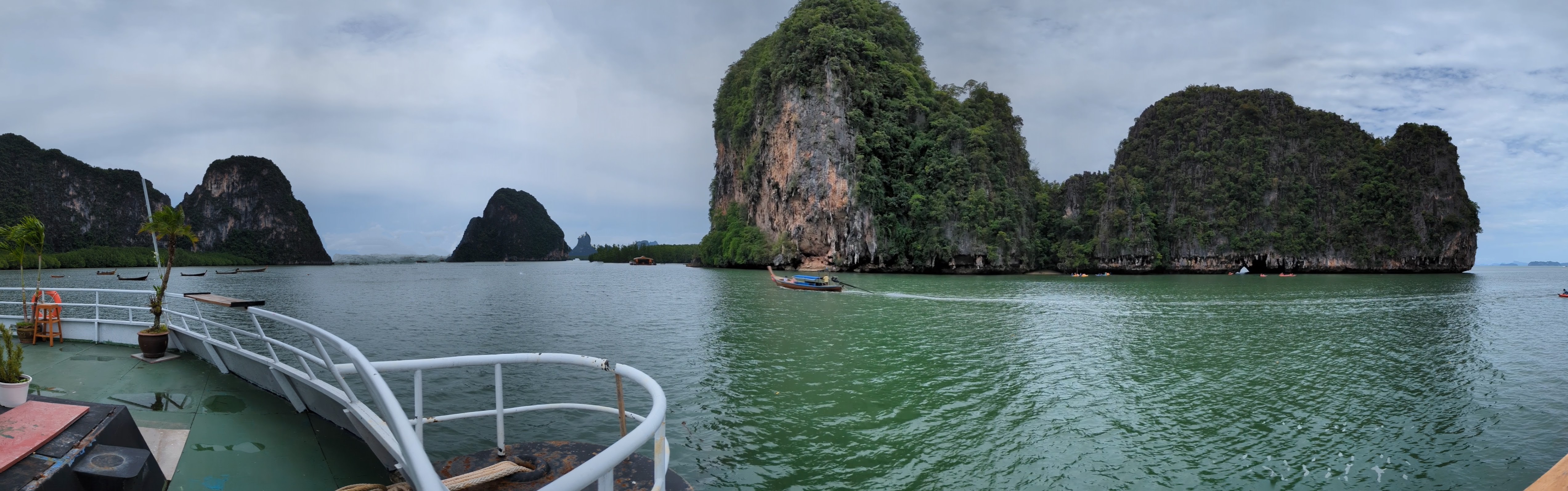 The duration of my time in Ao Nang when I was up and about was filled with gorgeous islands, beautiful jungle and an awe-inspiring day where I floated above more sea life than I have seen since my time in the Whitsunday Islands/Great Barrier Reef, Australia nearly 30 years ago. I was in the waters off Chicken Island, near Phi Phi Don, about 1 hour off Ao Nang…I saw eels, a reef shark, so many fish… And then after an hour in the ocean, I thought the water was changing colour because the sun and clouds had shifted… But it was a school of thousands of fish, moving as one. I stilled myself, quieting my snorkel breathing, and watched as they moved over the reef, flashing green and gold as they moved to stimulus I didn’t see or understand. I had become so still that other fish started swimming near me, yellow, white, black, purple, blue, brown and pink…the beauty was awesome and the words I want to use fail me in description… poetry in motion, a symphony of life in colour, the brush strokes of mother nature, the honour of bearing witness, all words that point in the right direction but cannot fully capture the enthralling textures and visions. I was, and remain, awestruck. For those moments in time, there was nothing but the sensations of experience, without words.